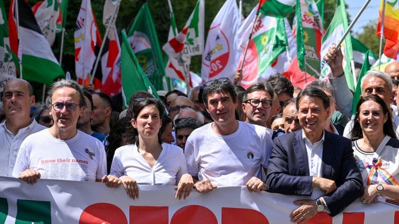 하지만 늘 그렇듯이, 거대한 대중 투쟁이 폭발하려면 도화선에 불을 붙이는 직접적인 계기가 있어야 한다. 이번 총파업에서는 우선 '글로벌 자유 함대(Global Sumud Flotilla, Sumud는 아랍어로 '칠전팔기七顚八起' 정도의 의미다)' 운동이 그런 역할을 했다. 이스라엘군의 해상 포위망을 뚫고 가자 주민들에게 구호품을 전달하고자 하는 이 국제연대 활동은, 우리에게도 그레타 툰베리가 탑승했다가 이스라엘군에 체포됐다거나 한국인 평화운동가 해초(김아현)가 억류되었던 소식으로 알려져 있다. 이탈리아는 이런 국제연대 직접행동 선박이 가장 많이 출항하는 곳이고, 총파업 직전에는 이탈리아 좌파를 대표하는 세 정당(민주당, 오성운동, 녹색-좌파연합)의 하원의원이 각각 한 명씩 탑승한 선박이 이스라엘군에게 나포되어 이탈리아 정계의 뜨거운 쟁점으로 떠오르기도 했다.