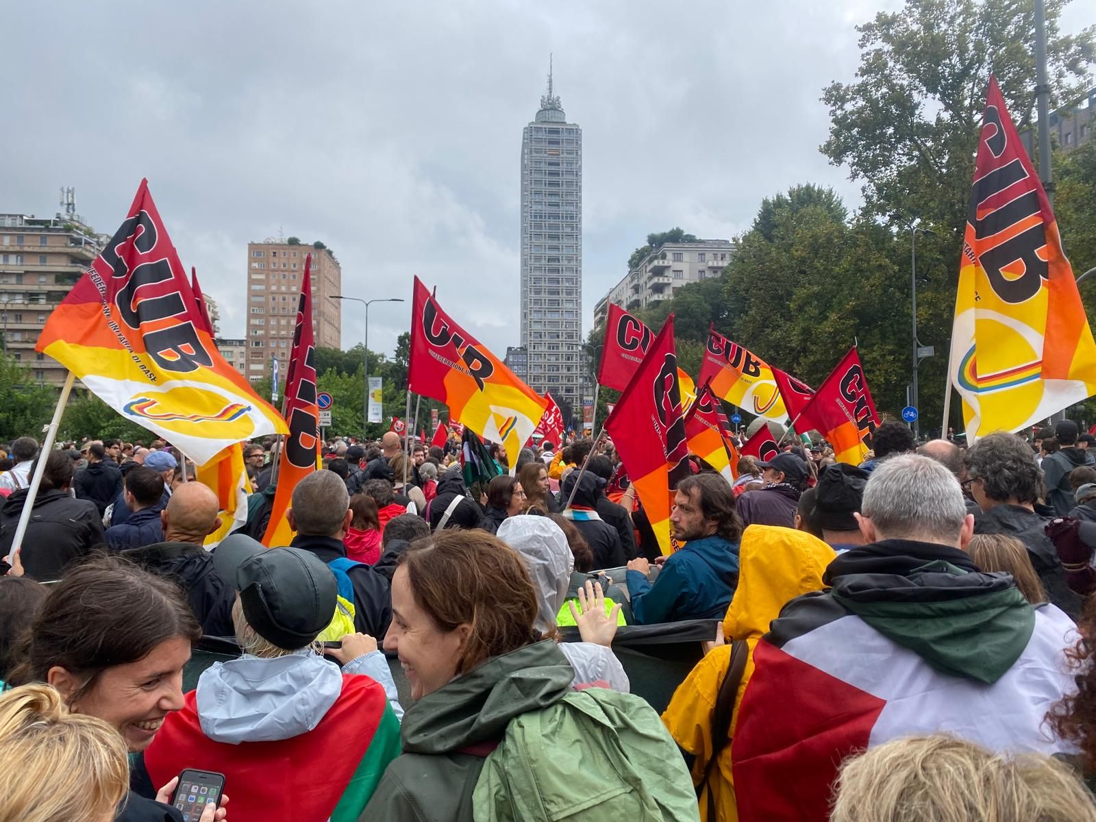 여기에 이탈리아 특유의 '기층' 노동조합들이 호응했다. 이름도 낯선 '기층노동조합연합(Unione Sindacale di Base, USB)', '기층통합총연맹(Confederazione Unitaria di Base, CUB)', '기층일반노동조합(Sindacato Generale di Base, SGB)', '이탈리아 생디칼리스트 노동조합(Italian Syndicalist Union, USI)' 등이 함께 총파업을 결의했다. 이들은 10월 3일 24시간 총파업 이전인 9월 22일(월)에 이미 "팔레스타인을 위해 모든 것을 봉쇄하라"라는 구호 아래 1차로 24시간 총파업을 단행했다. 이 때 파업 참여 인원은 벌써 100만 명 이상을 기록했다. 특히 주도적인 역할을 한 것은 철도를 위시하여 공공부문 및 운수·물류산업을 주된 조직기반으로 포함한 USB였다. 운수나 물류산업의 길목에서 USB 조합원들은 실제로 봉쇄를 실현할 역량을 갖고 있었다.