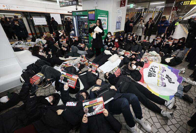 이날 보여준 시민들의 연대는 남태령에서 끝나지 않았다. 다음 날 아침 전국장애인차별철폐연대(전장연)는 안국역에서 "윤석열, 탄핵! 오세훈 OUT! 장애인도 시민으로 이동하는 민주주의 촉구!"를 구호로 내걸고 출근길 지하철 투쟁을 진행했다. 많은 학생 단위들이 결합한다는 소식을 보고 나도 아침 8시에 안국역으로 가야겠다는 생각을 하게 되었다. 그러나 한 가지 고민되는 사실이 있었는데, 보건연에서 운영하는 '윤석열 퇴진을 위한 보건의료 청년학생 모임(이하 퇴진모임)' 톡방에 행사를 홍보하고 공식적으로 결합할지 여부였다.