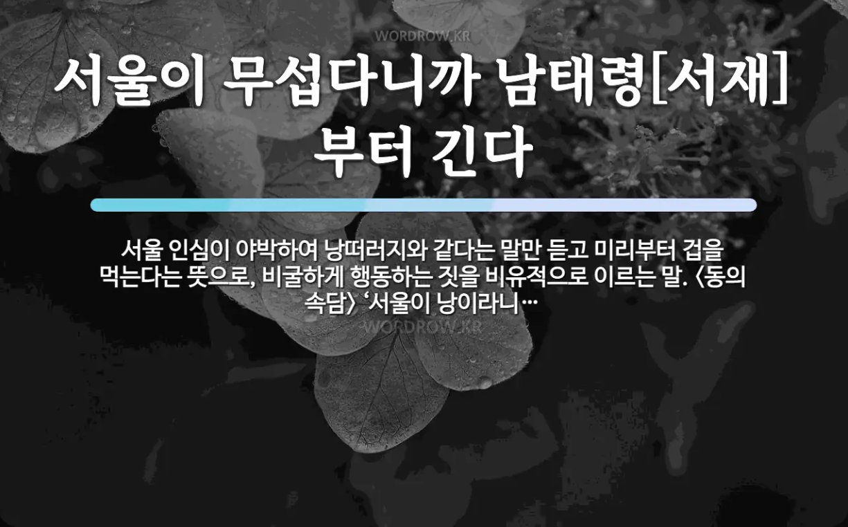 "서울이 무섭다니까 남태령에서부터 긴다"라는 속담이 있다. 조선시대 한양에 들어가려는 삼남의 촌놈이 서울 인심이 무서워 서울로 넘어가는 고개인 남태령에서부터 기어간다는 뜻이다. 지금이야 서울이 커져서 남태령 고개만 넘으면 서울이지만, 그 전엔 남태령에서 한양 도성까지도 한참이었으니 예로부터 서울 인심이 낭떠러지 같기로 소문이 났었나 보다. 조선 이래로 중앙 집권의 역사를 가져온 우리 사회에서, 서울은 단순한 지명이나 도시가 아니라, 그 자체로 위압감을 가지고 성벽을 둘러치는 언어이다. 남태령은 그 서울과 서울 바깥을 나누는 여러 공간적 경계 중 한 곳이다. 남태령은 서울을 둘러싼 거대한 성벽인 것이다.