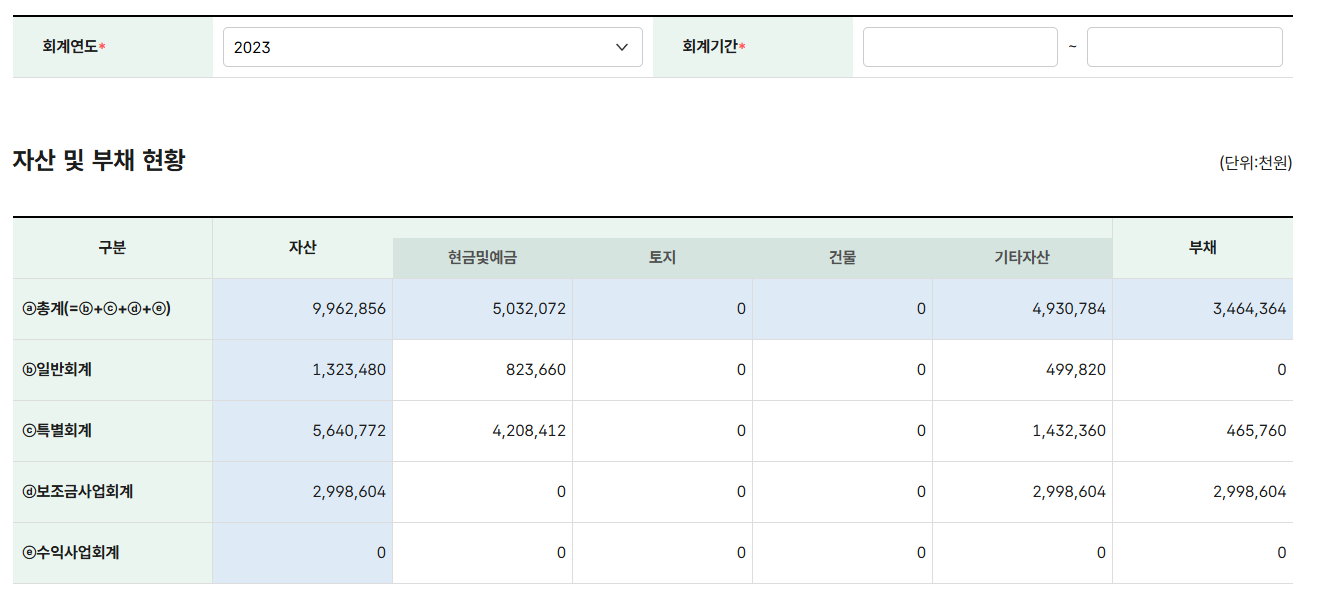 정부의 회계공시 시스템에 올라온 민주노총의 2023년도 회계공시. 출처: https://labor.moel.go.kr/