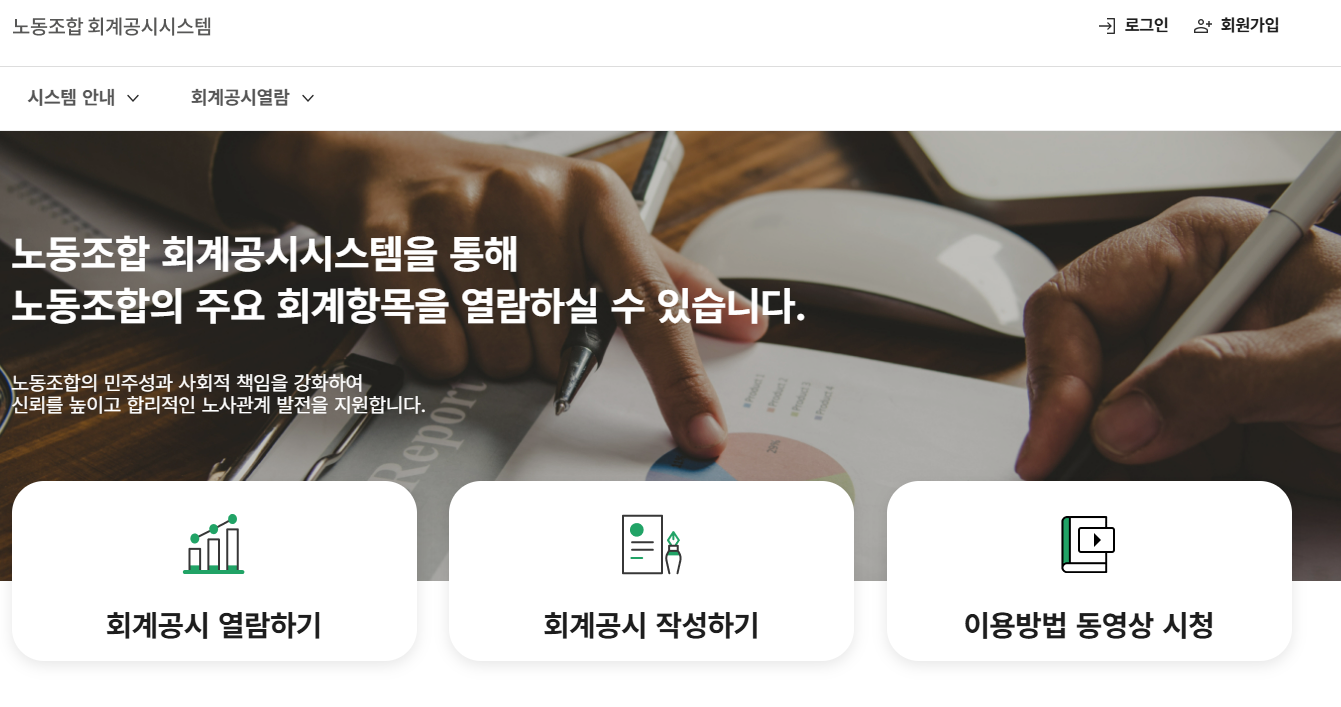 ① 노동조합이 고용노동부의 노동조합 회계공시시스템에 수입과 지출 등 회계 정보를 '자율적으로' 입력한다.