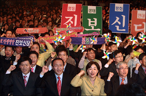 그 때 좋다, 분당을 하더라도 그러면 (새로운 정당의) 충분한 여력을 만들 수 있도록 6개월만 참으면서 이 안에서 조금 더 당내 투쟁을 하면서 정리를 하자, 이렇게 나갈 수는 없다 하는 얘기도 했었는데요, 비대위 혁신안이 부결되면서 어쩔 수 없다고 생각하게 된 거죠. 진보신당을 만들 때에도 처음에는 참여했습니다. 그 당시 주장했던 건 이왕 이렇게 됐으니 정말로 책임 있는 당을 새롭게 구성한다는 각오가 필요하다는 관점에서 제대로 시간을 갖고 노력하자는 입장이었고요. 그런데 불행하게도 분당이 되자마자 다가온 것이 18대 총선이었습니다. 총선에 당 없이 나갈 수는 없다. 그러니까 페이퍼 정당이라도 어쨌든 만들어야 된다. 이런 의견들이 있었고 여기에 대해서는 저도 동의했습니다. 다만 이 당이 '우리의 당'은 아니다. 선거를 치르고 나서 다시 원점에서 논의해서 제대로 된 당을 만들지 않고 갈 수는 없다고 주장을 하면서 진보신당이라는 일종의 가설정당으로 선거를 같이 치르게 됩니다.