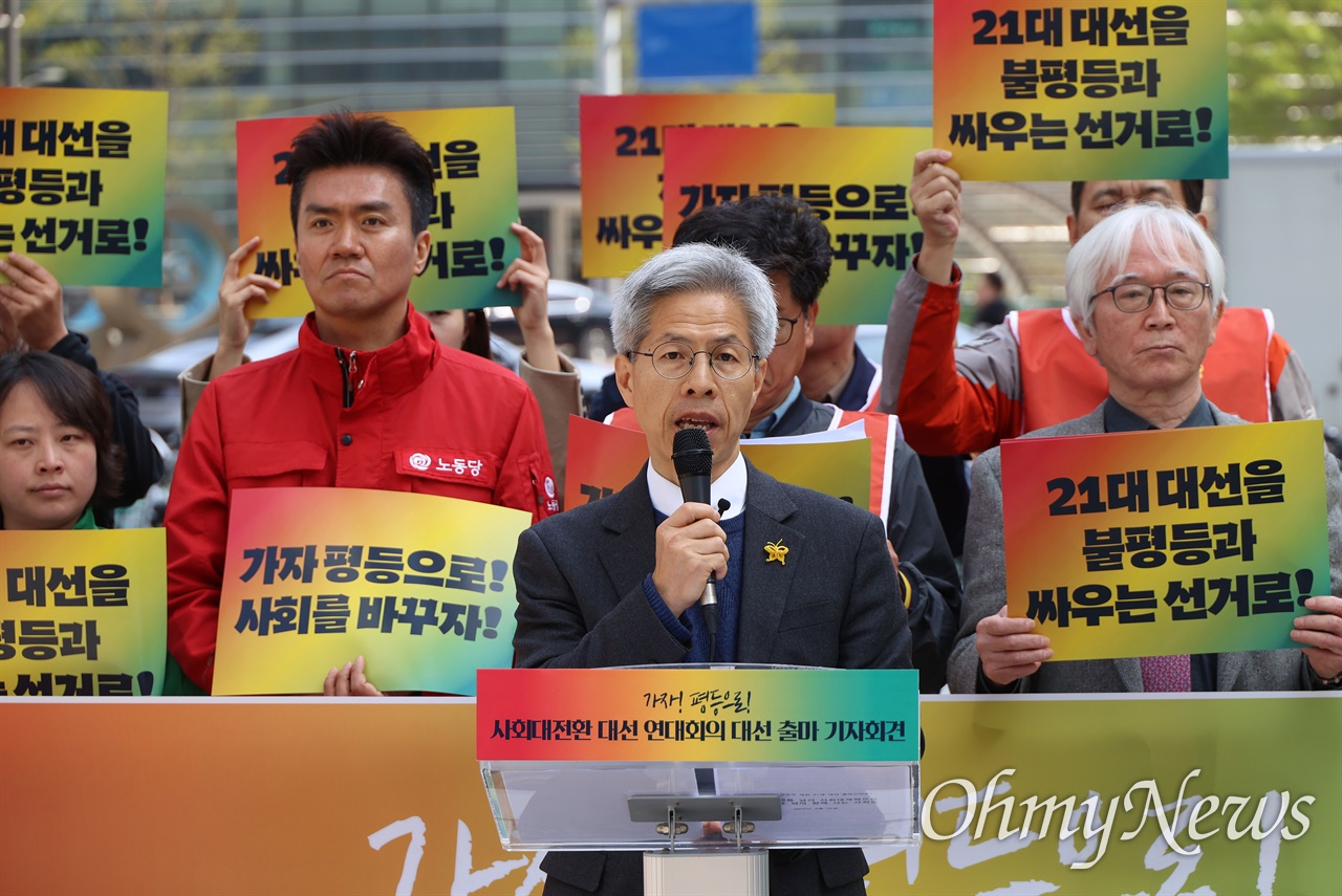 정의당만의 문제의식이 아닐 것입니다. 사회대전환 연대회의가 만들어 가는 대선은 정의당과 함께 안타깝게도 후보를 내지 못한 노동당, 어려운 상황에서 전면적 지지를 선언한 녹색당은 물론 그동안 현장과 지역에서 노동자 계급정치, 독자적 진보정치를 위해 헌신해온 여러 조직들과 함께 만들어 가는 공동대선입니다. 사실 우리는 하나의 같은 당에서 만나지는 않았지만 거리와 광장, 투쟁의 현장에선 언제나 하나였습니다. 그런 동지애와 신뢰가 있다면 작은 차이는 능히 극복할 수 있을 거라 믿습니다. 후보가 된다면 어떤 편견 없이 함께하는 모든 당, 조직, 사람들과 만날 것이고 그것을 하나로 융합하는 용광로를 만들어내겠습니다.