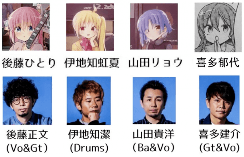이렇게 애니메이션 삽입곡을 통해 널리 알려진 아지캉이지만, 지금과 같은 대형 밴드의 위치에 오른 이후에는 역으로 아지캉을 모티브로 삼은 만화 및 애니메이션이 등장하기도 했다. 2022년 애니메이션으로 만들어져 대히트를 기록한 <봇치 더 록!>이 그것이다. 대인관계에 어려움을 겪는 기타 천재 히키코모리 소녀가 친구들을 만나 밴드를 결성하는 내용인 <봇치 더 록!>에 등장하는 '결속 밴드'의 모티브가 바로 아지캉이다. 주인공의 별명인 '봇치(히토리봇치, 외톨이라는 뜻)'는 아지캉 보컬 고토 마사후미의 별명인 '곳치'에서 착안했으며, 아지캉이 2008년 발매한 싱글 <구르는 바위, 너에게 아침이 내린다(転がる岩、君に朝が降る)>는 새롭게 커버되어 해당 애니메이션의 엔딩곡으로 사용되기도 했다.