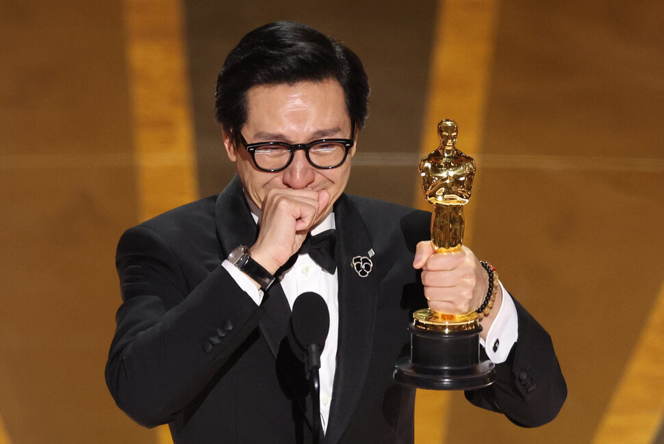 캐릭터의 성우 캐스팅도 의미심장하다. 키 호이 콴(Ke Huy Quan). <에브리씽 에브리웨어 올 앳 원스>로 아카데미 남우조연상을 수상하며 센세이션을 일으켰던 배우다. 베트남 전쟁 난민 출신인 그는 어린 시절 <인디아나 존스>와 <구니스>에서 활약했지만 아시아계 배우에게 주어지는 역할의 한계 때문에 오랫동안 스크린에서 사라져 있었다. 20년 만의 복귀작에서 그가 연기한 것은 평행우주를 넘나들며 자신의 가치를 증명하는 이민자 가장이었다. 디즈니가 이 배우를 추방당한 파충류 캐릭터의 목소리로 캐스팅한 것은 우연이 아닐 것이다.