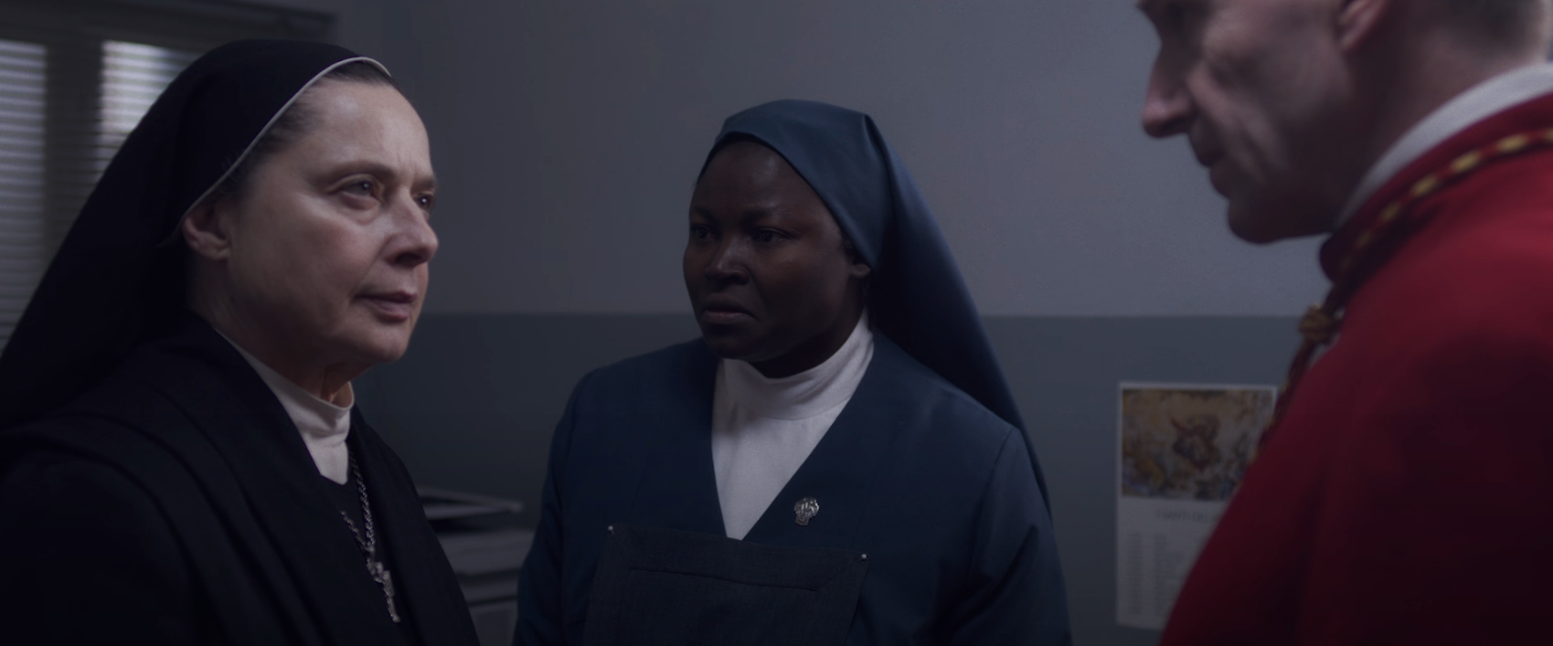 마지막으로 언급하고자 하는 것은 영화 속 여성들의 역할에 관한 것이다. 남성 중심적인 것으로 유명한 바티칸에서 펼쳐지는 영화치고는 이례적으로, <콘클라베>는 수녀들의 존재에 많은 관심을 보인다. 영화는 음식을 만들고, 숙소를 청소하고, 문서를 정리하며 콘클라베가 진행되는 데 필요한 크고 작은 노동을 수행하는 수녀들의 모습에 많은 관심을 기울인다. 이들 중 일부는 아데예미와 테데스코의 후보탈락에 결정적인 역할을 하기도 한다. 영화의 마지막 장면 역시 콘클라베가 끝나고 격리가 해제된 후 문을 열고 수녀들이 웃으며 지나가는 장면이다. 첫 저녁 식사 전 기도에서 "우리를 위해 식사를 준비하고 식사를 도와줄 수녀들을 잊지 않도록 도우소서"라 말하며 이들을 영화 내에서 직접적으로 호명한 유일한 사람이 다름 아닌 베니테스라는 사실은, 영화가 이들과 이들의 노동을 어떻게 바라보고 있는지에 대한 좋은 실마리가 되어 준다.