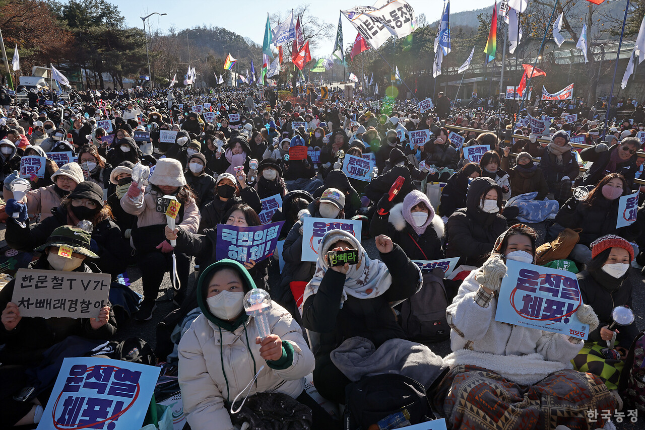 그러나 10년의 시간은 광장 정치의 작지 않은 변화를 만들어냈다. 작년 12월 3일 이후 열린 윤석열 퇴진광장에는 혐오와 배제를 용납하지 않는다는 규범이 뚜렷이 드러났다. 계엄 직후인 12월 7일 토요일 국회 앞에서 열린 최초의 대규모 집회에서 페미당당의 심미섭 활동가가 투쟁 현장에서 혐오에 맞서는 것이 '나중에'가 될 수 없음을 역설했을 때만 해도4 광장 일부에서는 해당 발언에 대한 야유와 비하가 실제로 행해졌지만, 광장이 거듭되며 최소한 소수자 정체성에 대한 현장에서의 공개적 혐오는 점차 사라져 갔다. 집회를 주도한 비상행동 역시 집회 발언과 현장 구호에 있어 혐오 발언이나 욕설을 강력히 배제했다. 이는 실제 이번 광장을 주도한 세대-젠더가 여성혐오에 민감하고 페미니즘에 친화적인 2030세대 여성이었다는 점과도 무관하지 않다.