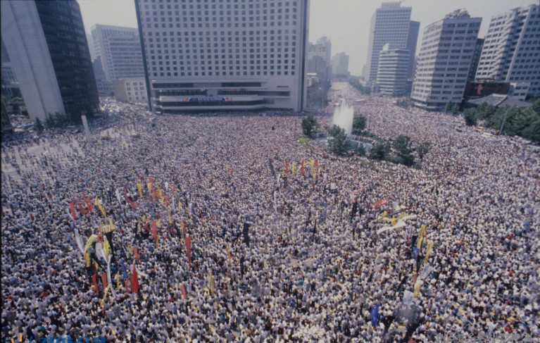 6월 민주항쟁의 성과에 힘입어 9차 개헌으로 수립된 제6공화국 체제는 1961년 이후 지속되어 온 군사정권을 종식시키며 민주화의 시대를 열었던 역사적 진일보의 상징이었지만, 동시에 그 시작부터 여러 문제점들을 내재하고 있었다. 우선 당시 개헌 과정을 전두환과 노태우가 소속된 집권여당으로서 청산의 대상이던 민주정의당 국회의원들이 주도했다는 태생적인 한계가 있었다. 이에 789 노동자대투쟁으로 대표되는 당시 민주화 투쟁 내부의 보다 급진적이고 노동해방적인 시류는 개헌 과정에 반영되지 못했다.15 뿐만 아니라 한국형 대통령제가 지니는 권력집중적인 면모 역시 거의 개선되지 않았다. 당시 여야의 개헌 협상은 민주정의당과 제1야당인 통일민주당에서 각각 4명씩 선출된 비공식기구인 '8인 정치회담'을 통해 비밀리에 주도되었는데, 이들은 대통령 직선제 선출에만 합의했을 뿐 제3공화국 이후 이어진 대통령의 제왕적 권한 자체에는 거의 손을 대지 않았다.16 이는 김영삼, 김대중 등 당시 대권을 노리고 있던 야권 주요 의사들의 의중이 반영된 결과물이었는데, 정치학자 서희경은 이러한 8인 정치회담의 야합적인 면모가 '사당화된 정치(personalized political party)' '사시화된 정치(privatized politics)'의 적나라한 사례였다 비판하며 대통령을 선출한 집권당이 절대권력을 누리며 승자 독식과 정치적 양극화를 부추기는 민주화 이후 한국 정치 폐해의 원형이라고 주장한다.17