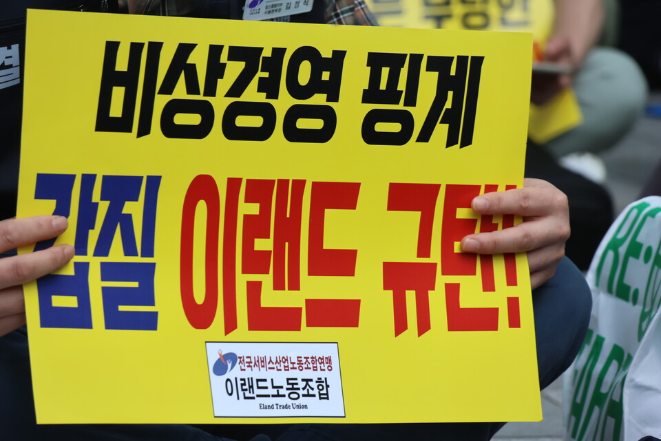 이랜드는 자회사의 법인 합치기, 쪼개기 등을 이어 오며 이른바 사모펀드와 비슷한 구조로 자회사들을 운영해 왔다. 이번에도 어김없이 이랜드리테일과 킴스클럽의 법인 통합 소식이 들려왔다. 구조조정을 위한 초석이었다. 경영구조가 바뀌었으니 내부 직원들도 정리를 하겠다는 속 보이는 전략이었다. 회사는 이러한 조치를 이어 오며 노조와의 대화를 한 달여 간 피하다가 노조가 기자회견 날을 잡자 바로 그 날 협의회를 열겠다고 나왔다. 기자회견을 무산시키려는 수였다.