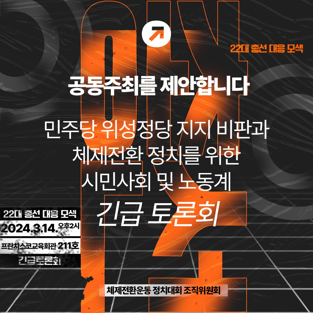 이를테면 (새로운 정치세력화의 주역들이) 꼭 새로운 얼굴들만은 아닐 수도 있습니다. 기존에 세상을 바꾸기 위해 조직되어 있는 사람들과 단체들을 새로운 목표지향으로 함께 정렬하는 것이 필요할 수도 있다는 뜻입니다. 체제전환운동 조직위원회의 가맹 단위들이 위성정당 사태를 불러온 종속적 사회운동에 대해 비판적 목소리를 냈던 것은, 이제는 새로운 목표를 찾아야만 한다고 생각하는 사람들이 사회운동 내에서도 늘어나고 있다는 것을 의미합니다. 사회운동 내부적으로도 모종의 절박함에서 나오는 목표의식이 있다는 것인데, 사회운동의 그런 목표의식과 독자적 진보정당의 목표의식은 조금은 시간이 걸릴지라도 충분히 합치될 수 있는 주장과 목표라고 생각합니다. 이렇게 같은 결의 고민을 가진 사람들을 규합하는 일이 새로운 정치세력화의 첫 번째 과제일 것입니다.