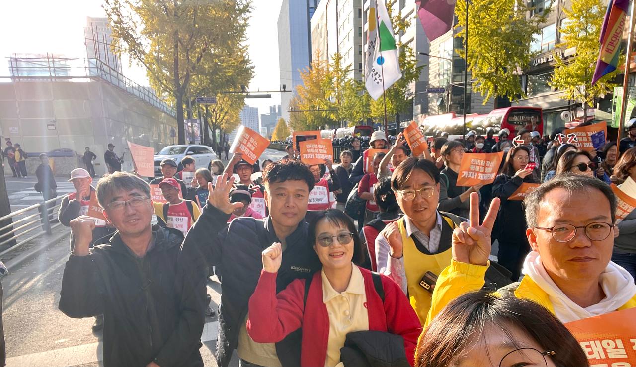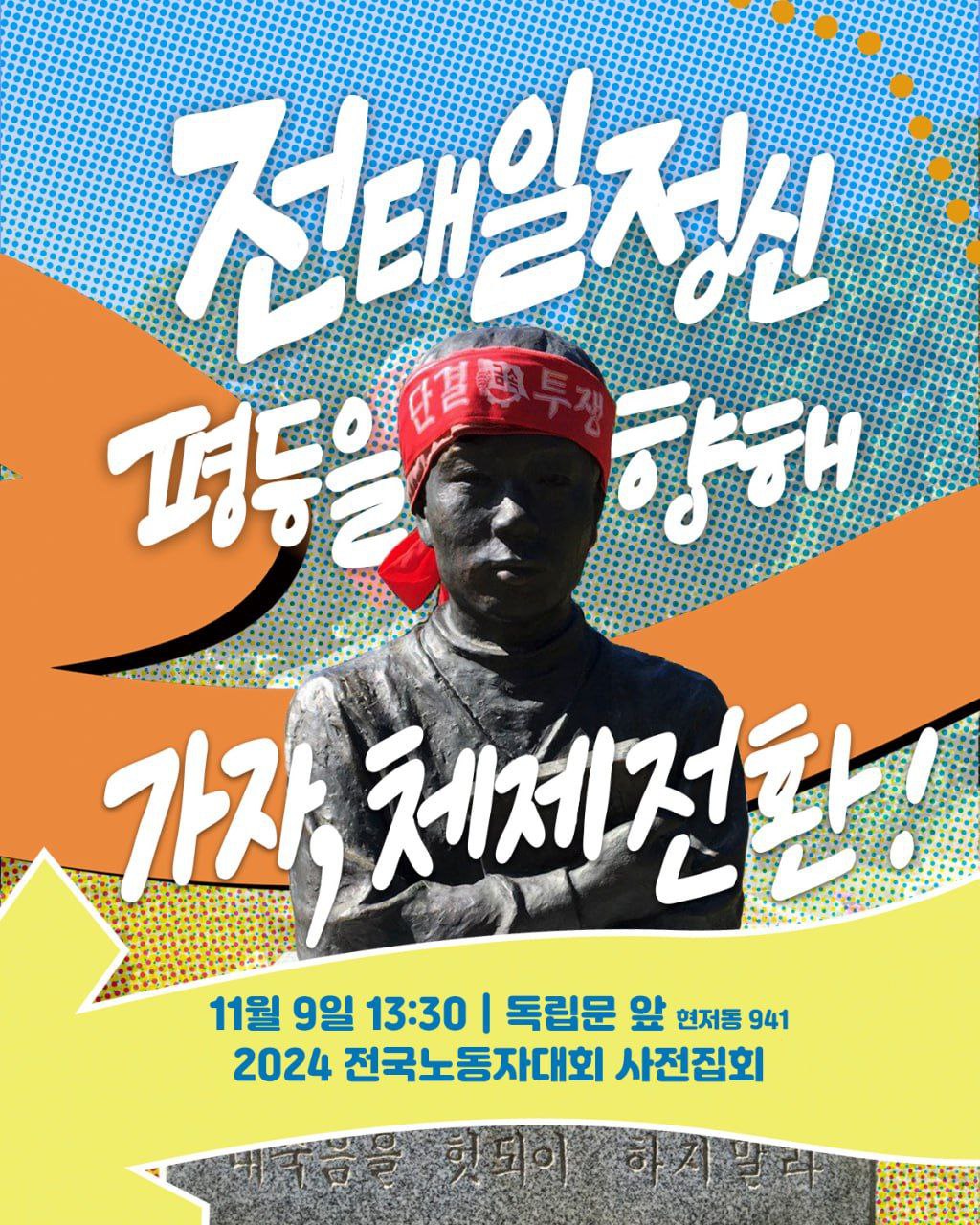 지난 11월 9일 전환 회원들은 서울 도심에서 개최된 2024 전태일열사 정신계승 전국노동자대회에 함께했습니다. 전환 회원들은 13시 30분 독립문 앞에서 체제전환운동 조직위원회 주최로 개최된 < 전태일 정신 평등을 향해 가자, 체제전환 공동행동!>에 정의당 대오와 합류하여 함께 사전집회를 개최했고, 이후 16시 세종대로에서 열린 본대회 및 행진으로 합류했습니다.