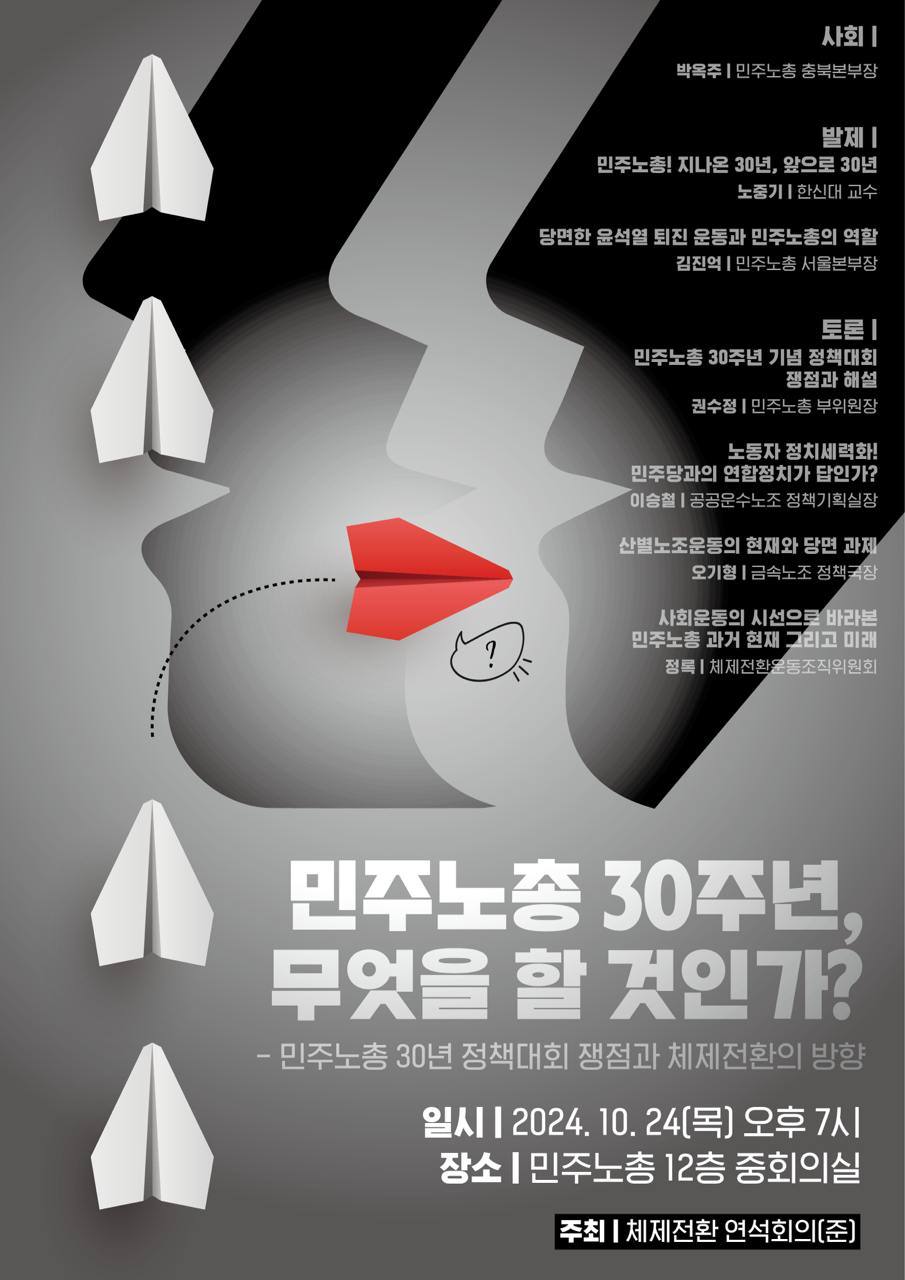좌측부터: 2024년 3월 개최된 체제전환운동 조직위원회의 위성정당 비판 토론회 / 2024년 10월 개최된 체제전환 연석회의의 민주노총 30주년 평가 토론회. 출처: 체제전환운동 조직위원회 / 체제전환 연석회의