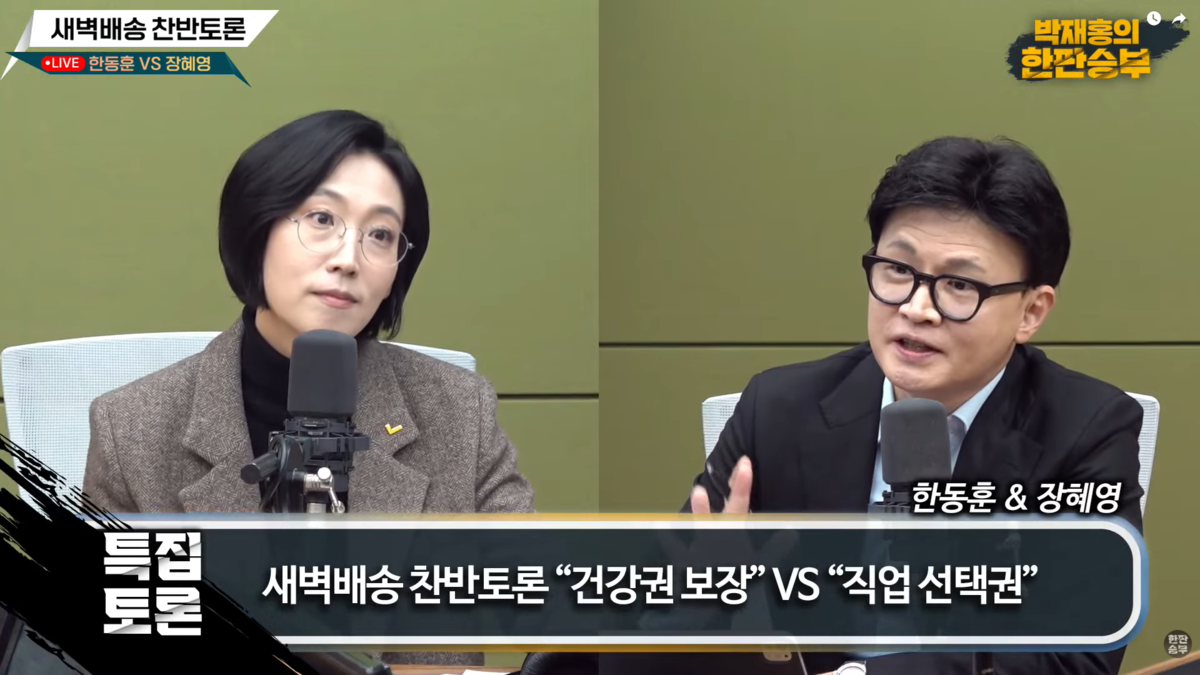 - 디지털타임즈, 민노총 맞붙은 한동훈 “0~5시 ‘새벽배송 금지’ 비판 고소? 장난 말라”…택배기사 직접 소통, https://www.dt.co.kr/article/12026699 [본문으로]