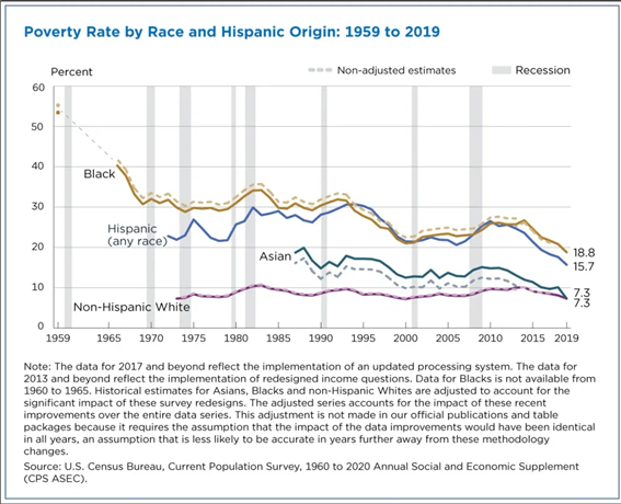 그렇다면 소수자 집단, 특히 민주당의 핵심 지지계층이었던 히스패닉계 득표율의 하락과 흑인 남성 26%의 트럼프 투표는 어떻게 설명할 것인가? 일각의 말처럼 민주당이 PC 정책을 더 강화하고 소수자(소수인종)들의 표에만 집중했다면 이들에게서 득표율이 떨어진 것을 설명하기 어렵다. 오히려 최근 민주당은 공화당 이탈파(심지어 네오콘까지 포함된)를 포섭한다고 이들을 등한시해 왔다. 이들의 이탈과 러스트벨트 블루칼라들의 이탈에는 비슷한 맥락이 있다. 우선 흑인과 히스패닉 사회에는 저소득층의 비율이 높다. 히스패닉과 흑인의 빈곤율은 각각 약 18%, 15%로 7%에 불과한 백인 및 아시아계의 빈곤율과 큰 차이를 보인다. "위기 속에서도 경제성장률 3%를 유지해 왔다"는 민주당의 선전은 사실이었지만, 버니 샌더스의 성명이 말하듯 미국 노동계급의 평균 임금은 물가 반영 시 50년 전보다 되려 하락했다.
