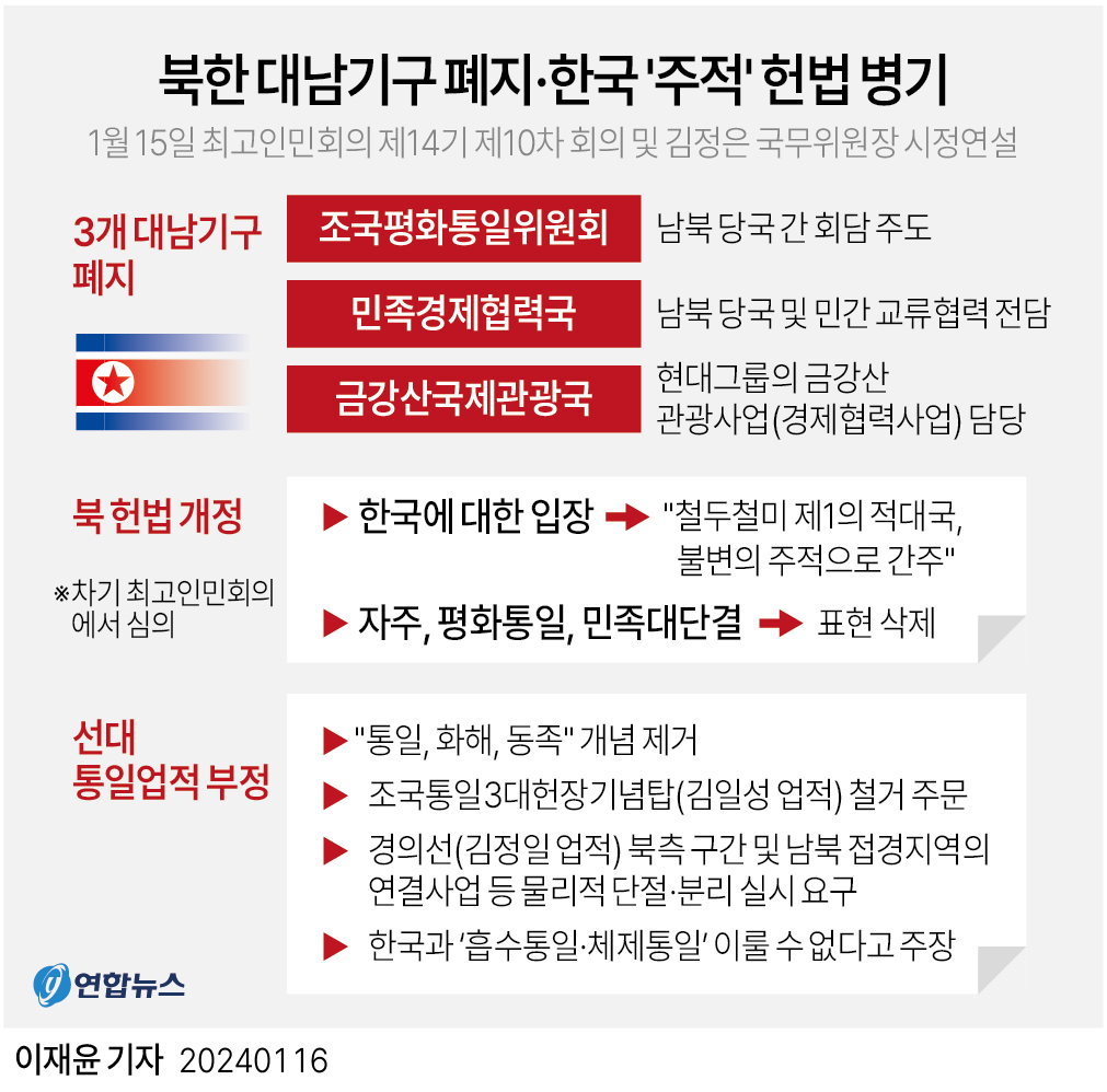 - 한겨레, [단독] 북, 76년 지켜온 '남한 혁명통일론' 사실상 폐기 https://www.hani.co.kr/arti/politics/defense/997464.html [본문으로]