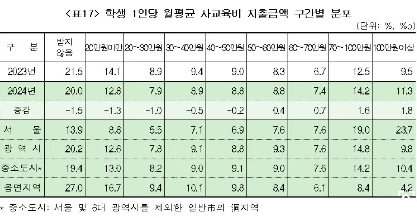 - KBS 뉴스, 사교육비 1인당 월평균 47만 원…서울 고등학생은 102만 원 https://news.kbs.co.kr/news/pc/view/view.do?ncd=8199394 [본문으로]