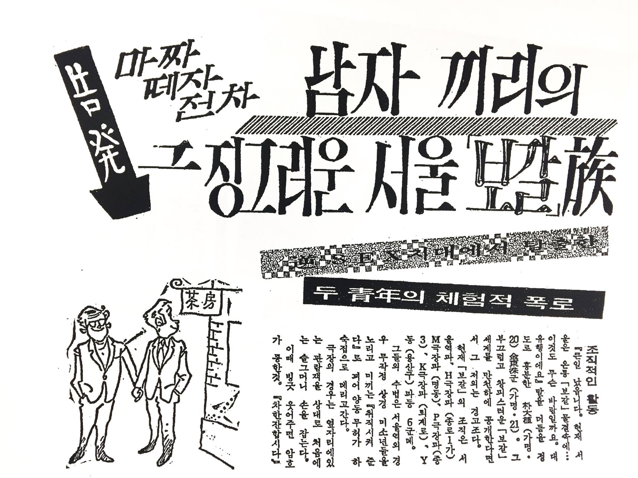 또한 '동성애자' 역시 당시로서는 미국과 별개의 이미지로 존재하지는 않았다. 앞서 본 것과 같이 동성애는 '외국의 신기한 일'과 같은 논조로 소개되는 일이 많았고, 이러한 기사에서 "동성애는 새롭고 이상하고, 우리의 문화와는 거리감이 있는 것으로서 다루어졌다. 경악하는 독자의 위치는 자연스럽게 그 반대에 놓이게 되었으며, 이렇게 동성애를 '새롭게' 재발견하며 놀라워 할 때마다, 그 반대편에서 우리의 전통 또한 동시에 이성애 규범적인 것으로 '새롭게' 재발견되어 왔다."13 그 결과 한국 사회 내부의 동성애는 마치 화물선에 붙어 온 해충처럼 외국에서 들어온 '징그러운 것'으로 취급되었고, '외국의 문화에 의해 한국의 사회문화가 오염되고 있다는 증거'로서 다루어졌다.