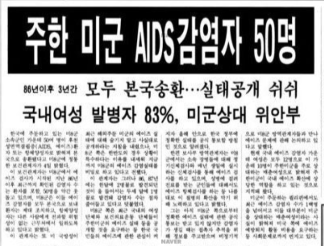 이에 더해 한겨레는 한국에서 에이즈에 감염된 여성 12명 중 10명이 주한미군을 상대하는 성매매 여성이라는 점을 들어 주한미군이 에이즈 확산의 원인임을 강조하며 기사를 마무리하고 있다. 뿐만 아니라 한겨레는 다음 날 비슷한 논조로 한 번 더 보도를 하며 표제를 'AIDS 국내확산 주한미군 큰몫'으로 잡아 주한미군이 AIDS 방역에 있어 특권을 가지고 있다는 것을 다시 한 번 강조하였다.4