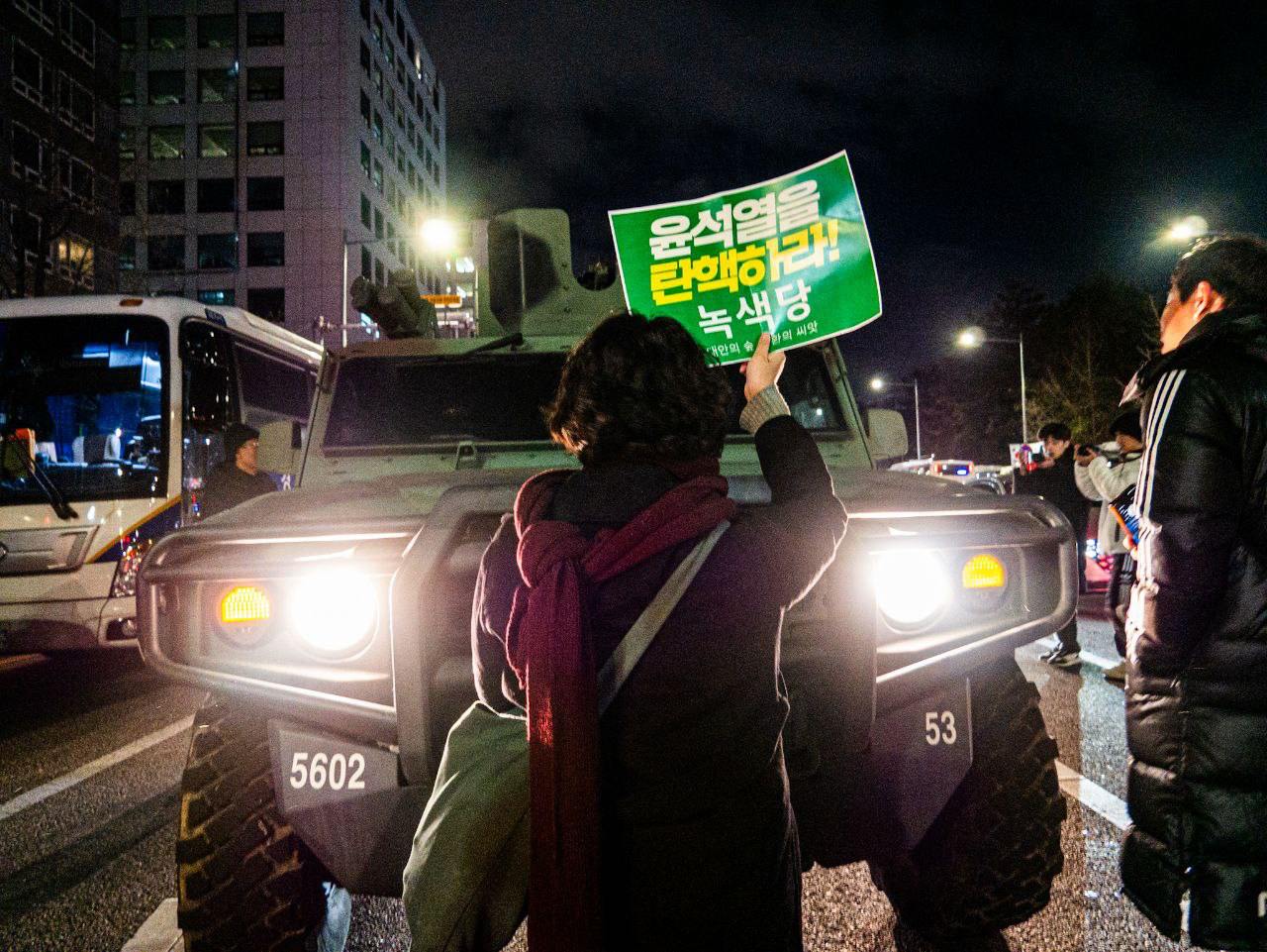 물론 윤석열 정부가 행하는 퇴행적 시도들과 정책적 후퇴들에 있어서는 단호히 맞서야 하고 녹색당도 그런 투쟁들을 해 왔지만, 그 모든 것들이 단순히 퇴진 운동으로 수렴되는 것에 대한 우려가 있었던 것이죠. 그런데 비상계엄이 터지고 나서는, 이건 사실 말도 안 되게 선을 넘는 것이기도 하고.. 실제로 많은 분들이 신변의 위협을 느끼시기도 했잖아요. 무장한 계엄군을 국회에 보내고, 자신에 반대하는 국민들을 '반국가세력'으로 지칭하면서 기본권을 짓밟으려 하는 것에 대해서는 당연히 민주주의의 근간을 지키기 위해 맞서 싸워야 하는 것이니까요. 그 당시에는 당연히 그 생각만 했던 것 같습니다. 그래서 계엄 당일 녹색당도 소식을 듣자마자 당원들께 집결 요청을 하고 국회로 달려갔고, 진보 3당 간의 긴급한 논의를 통해 그 다음날 바로 기자회견을 갖고 공동대응을 해 나가기 시작했습니다.