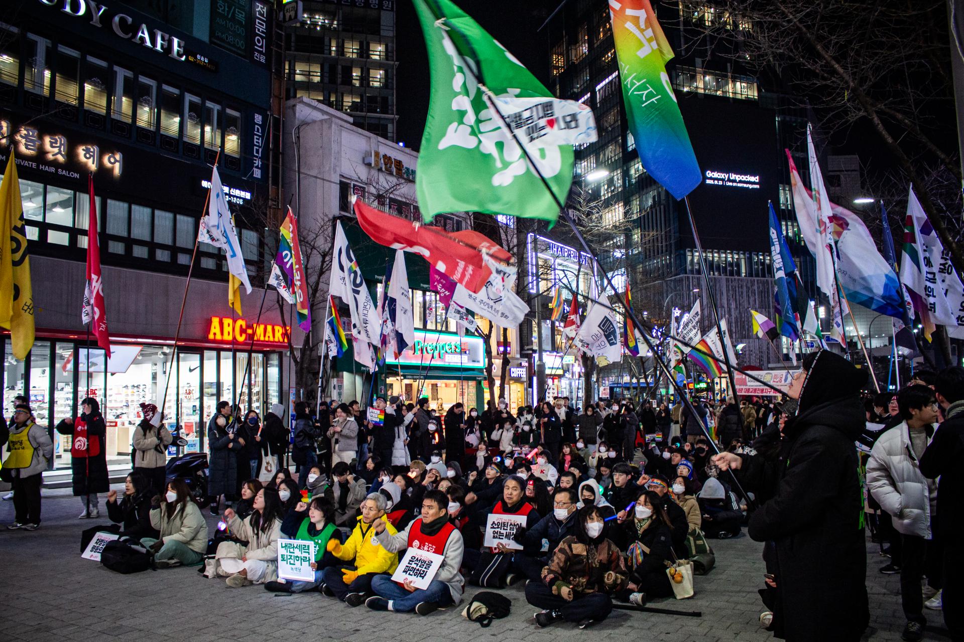 그렇게 함께해 나가면서 우리 스스로가 점차적으로 다양한 과제들을 더 찾고 만들어온 게 아닐까 합니다. 사실 계엄 이전에도 진보 3당이 모여서 어떻게 하면 이 진보정치와 사회운동의 연합을 통해 윤석열에 맞서는 투쟁이 다른 방향의 흐름으로 연결되게끔 할 수 있을지 고민해 왔는데요, 그러다가 계엄이 터진 거죠. 그래서 지금은 이 정세 속에서 진보 3당과 세상을 바꾸고 싶어하는 다양한 단위들이 함께 '윤석열 퇴진, 세상을 바꾸는 네트워크(이하 세바넷)'를 꾸려서 퇴진운동 내 우리의 블록을 형성하면서 독자적 세력을 강화하기 위해 노력하고 있고, 녹색당도 여기에 함께 집중하고 있습니다.