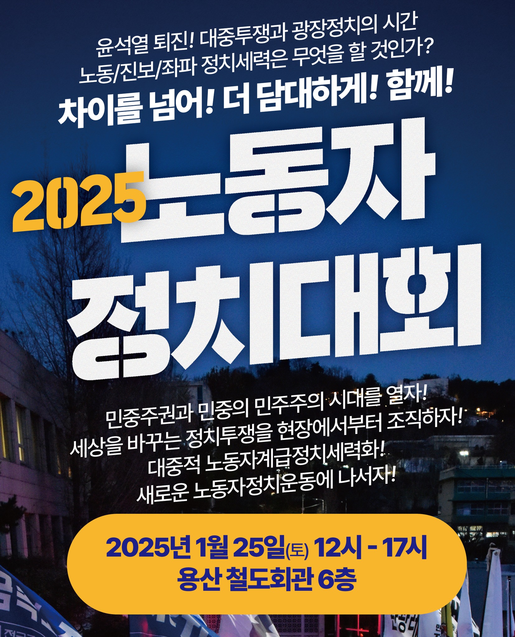 결국 우리의 고민은 노동자계급의 계급투표 시대를 어떻게 다시 제대로 열어갈까일 수밖에 없고, 그 길을 열기 위해 현장에 더 적극적으로 다가서야만 할 것입니다. 노동자들에게 저항과 연대로 세상을 바꿀 수 있다는 확신을 심어 주지 않는다면 진보정치의 방황은 더 길어질 것입니다. 이런 좌표와 목적의식을 우리 스스로가 명확히 하는 2025년이 되었으면 좋겠고, 그 목표를 중심으로 한국 사회의 문제를 풀어나가는 실력을 키워나가는 도반(道伴)들이 많아지길 바라고 있습니다.