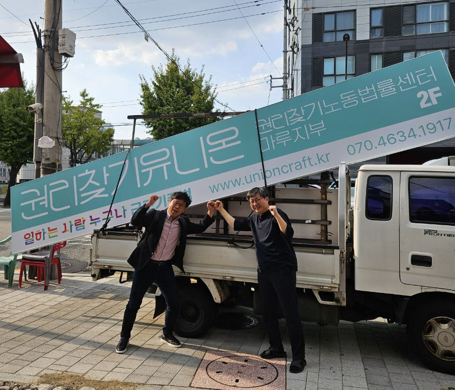 2019년부터는 감옥에서 다짐한 대로 뜻을 같이하는 동지들과 함께 권리찾기유니온을 창립해 지금까지 활동해 오고 있습니다. 우리 사회에서 유령 같은 존재로 살아가는 수많은 노동자 문제를 함께 고민하는 단위가 필요하지 않은가, 하는 문제의식에서 출발했고요. 처음에는 위원장직을 맡았고 현재는 조직부장으로 활동하고 있습니다. 말씀하신 KGM 차량 판매는 생업으로 하고 있는데, 방금 말씀드린 활동들에 일상의 대부분을 투여하다 보니 잘 되지는 않아 어렵게 살아가고 있습니다.