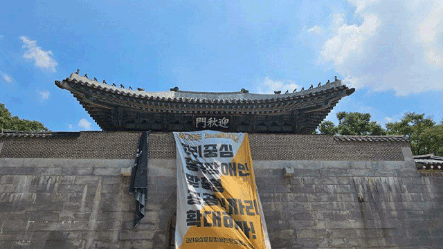 - KBS 뉴스, 경복궁 영추문에 대형 현수막 건 전장연 활동가들, 하루만에 석방 https://news.kbs.co.kr/news/pc/view/view.do?ncd=8314238 [본문으로]