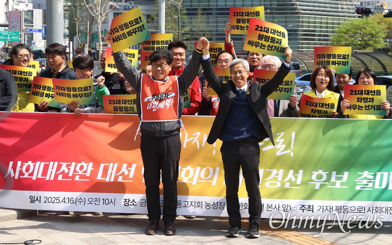 광장의 목소리가 들리지 않는 대선 정국이다. 이 험난한 시기에 윤석열 퇴진 너머 사회대개혁을 외쳤던 광장의 열망을 대변하고, 이 체제의 모순을 폭로하며 평등과 체제전환의 비전을 제시하기 위해, 노동운동·사회운동·진보정당들이 모여 '가자! 평등으로 사회대전환 대선 연대회의'를 결성하고 "함께 평등으로! 함께 체제전환 정치로!"를 기치로 하여 공동 후보로 권영국 후보를 선출했다.
