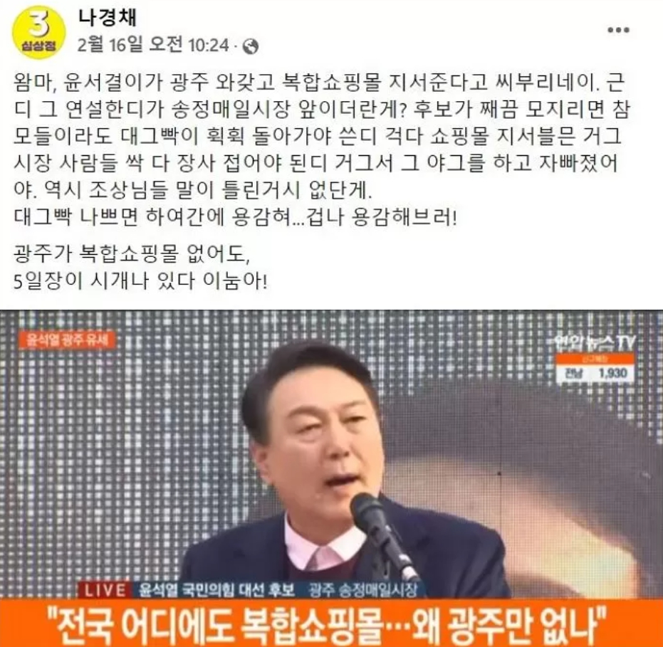 과거 2007년 대선 당시 유시민 당시 보건복지부 장관은 "한나라당이 정권을 잡아도 나라는 망하지 않는다"며 지지층의 성숙한 민주주의 의식을 독려했다. 그러나 지금의 더불어민주당은 거꾸로 "우리가 아니면 지역 경제가 망할 것"이라는 공포를 배양하며 호남을 재정적 인질로 삼고 있다. 비판하던 대상을 베끼면서까지 지역의 자생력을 파괴하는 이 설계는 기괴하다는 말 말고는 도무지 평하기 어렵다. 결국 이는 호남의 민주당 지지를 자발적 지지가 아닌 '생존을 위한 복종'으로 변질시키려는 가스라이팅에 다름없다.