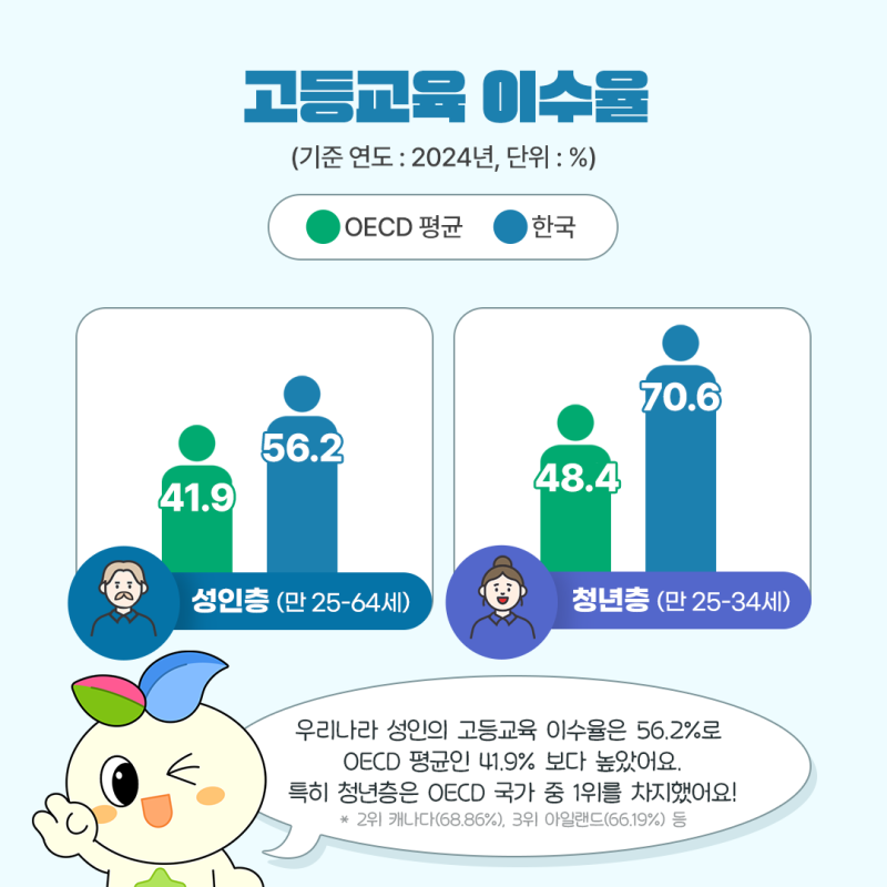 - 대한민국 정책브리핑, 경제협력개발기구(OECD) 교육지표 2023 https://www.korea.kr/archive/expDocView.do?docId=40660# [본문으로]